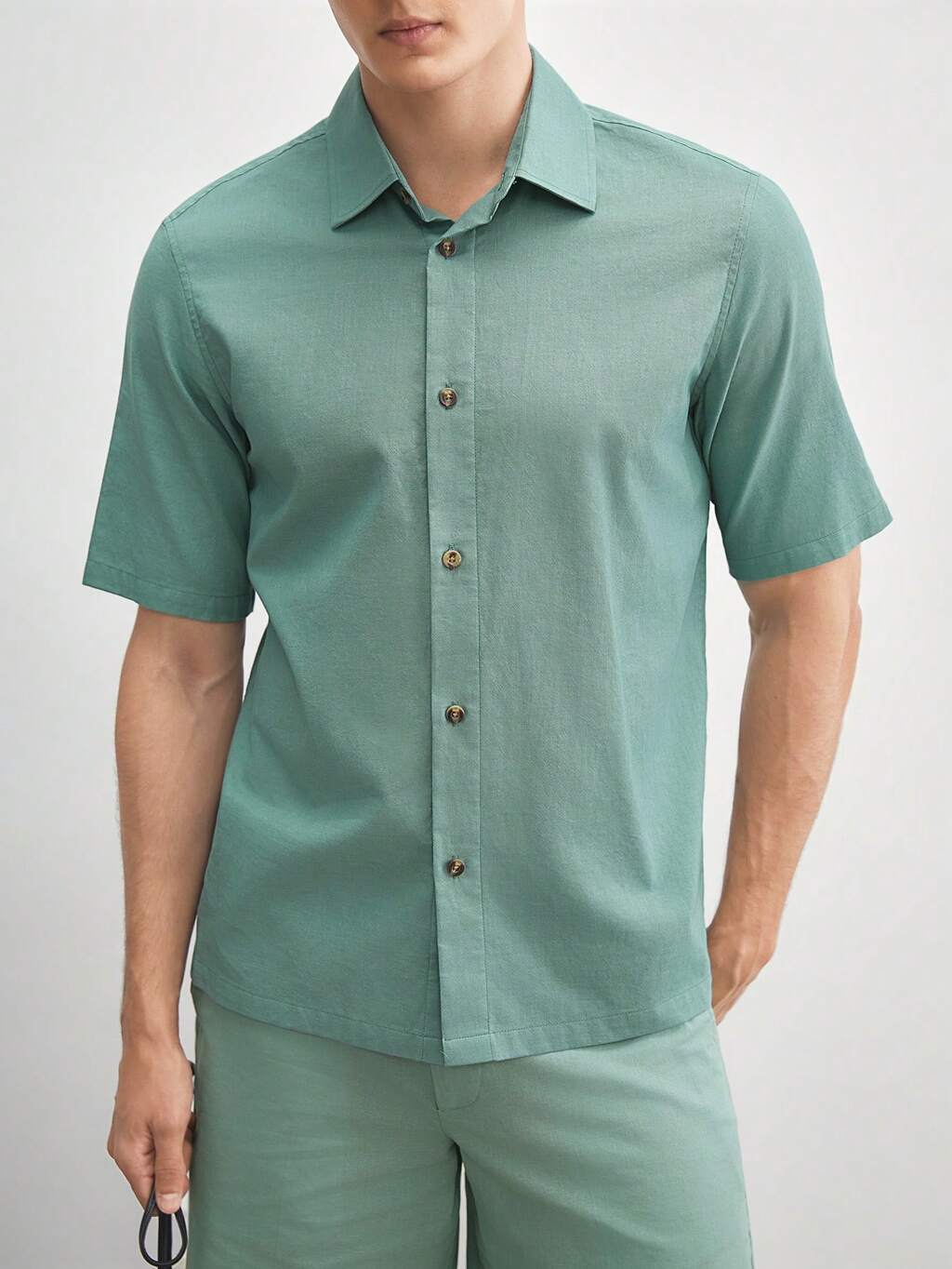 Cotton Men's Loose Fit Casual Woven Short Sleeve Shirt, Suitable For Summer Everyday Wear