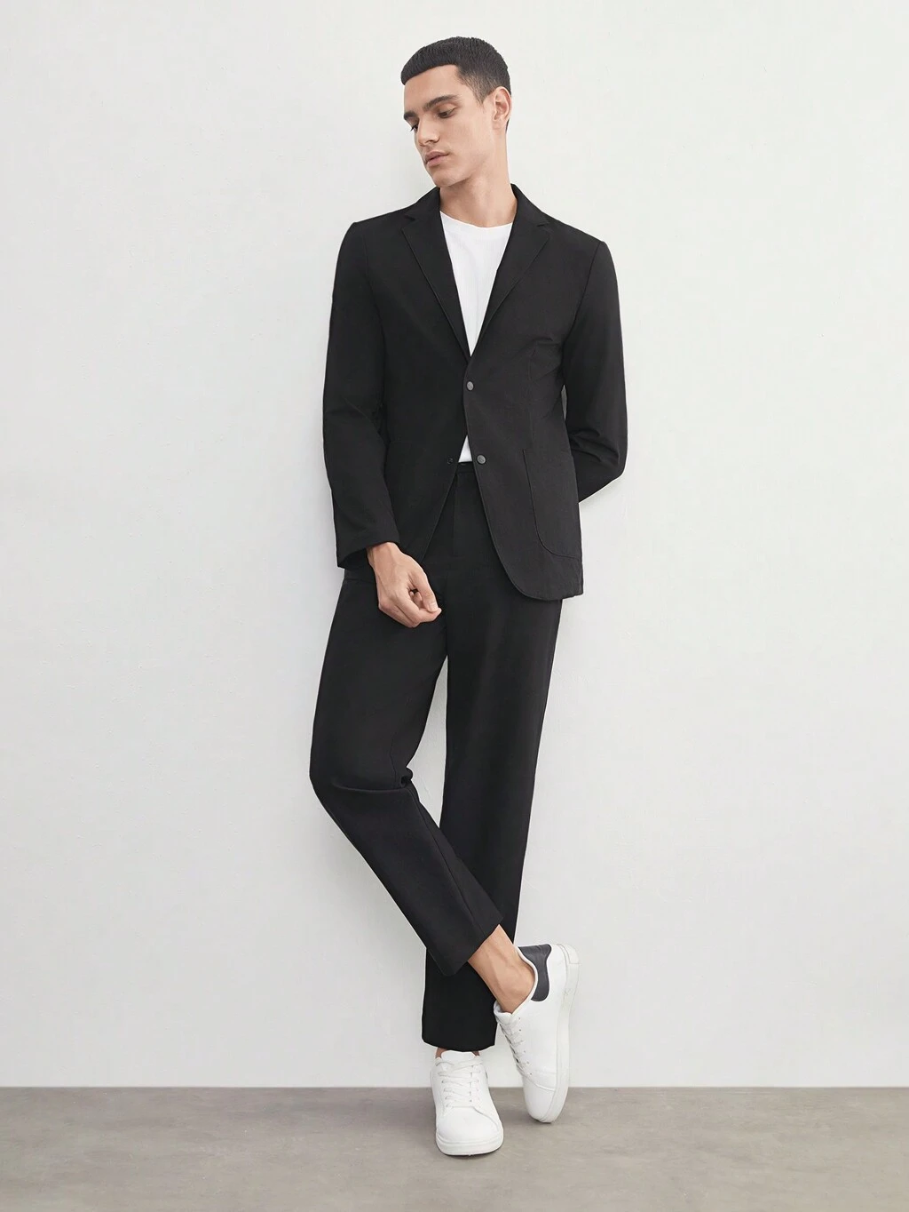 Easy Care 2pcs/Set Men's Old Money Style Woven Cool Silky Ammonia Elastic Fabric Suit Jacket With Tapered Pants