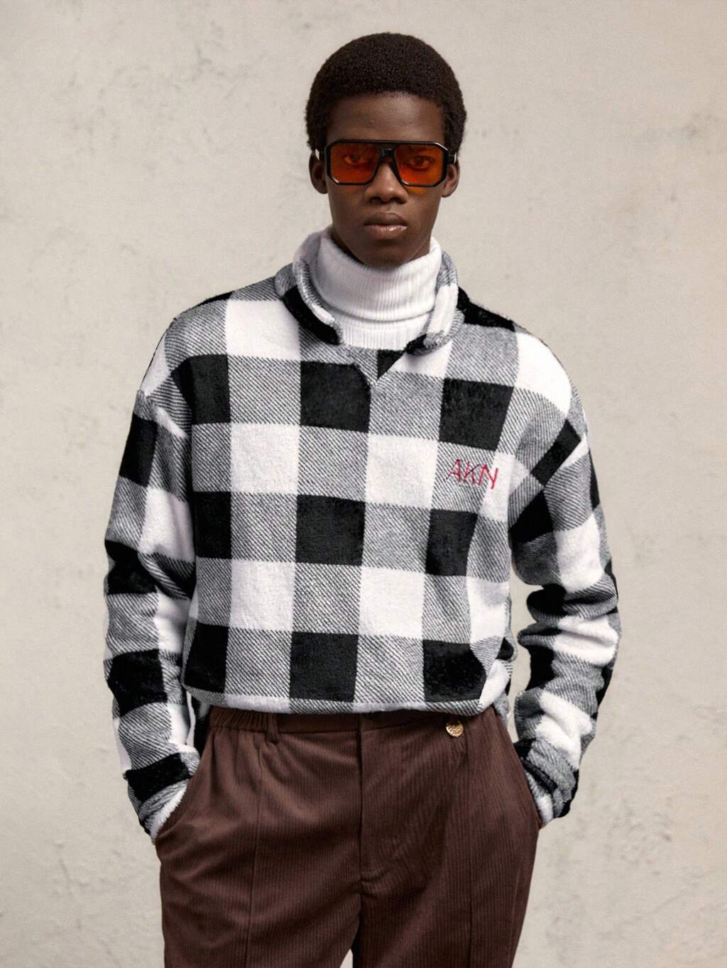 Men's Woven Plaid Slim Fit Stand Collar Long Sleeve Casual Shirt, Suitable For Autumn