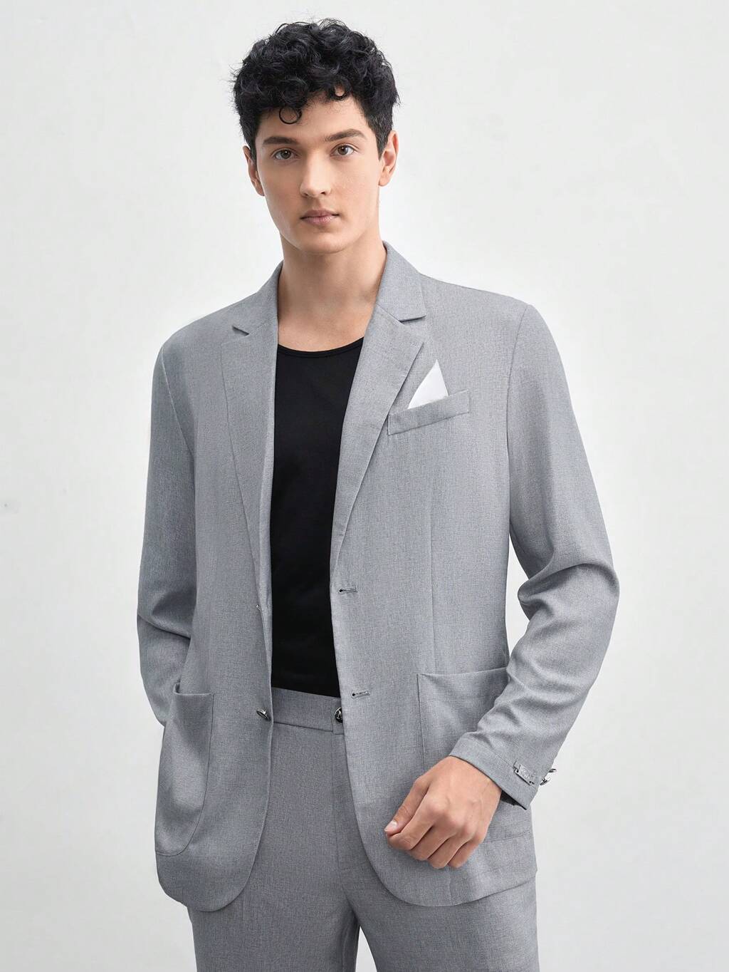 2pcs Men Slim-Fit Casual Suit Set For Office Wear
