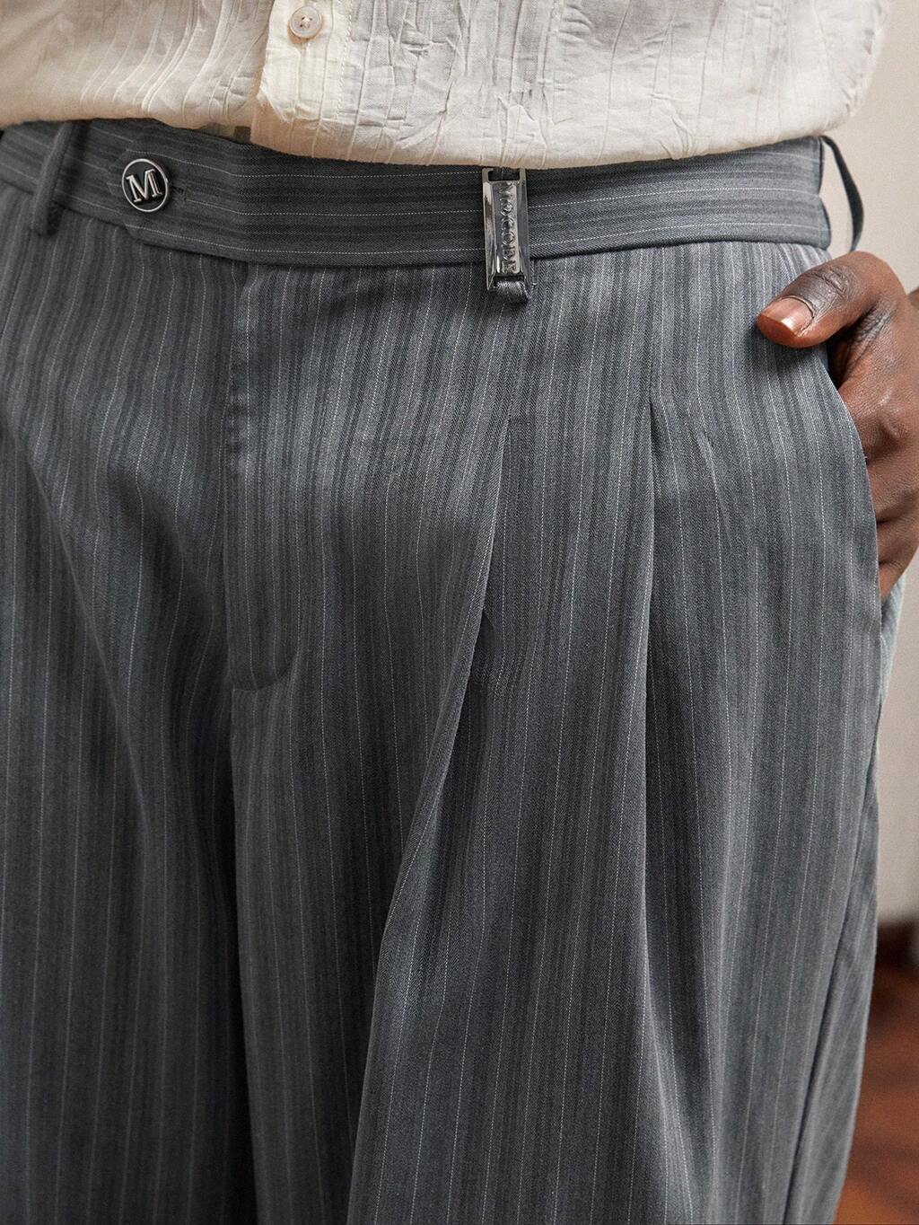 Men Woven Striped Mid-Waist Loose Casual Pants, Suitable For Daily Wear, Fall