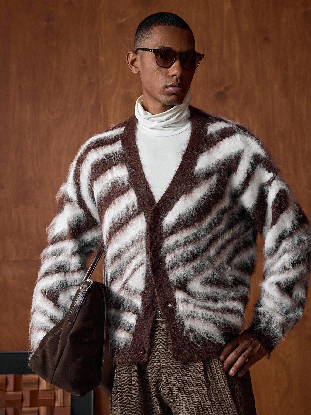 AKNOTIC Brand Men's New Cardigan Sweater - Leopard Fleece - Casual Outerwear - Suitable For Autumn/Winter - Hand Wash Or Dry Clean