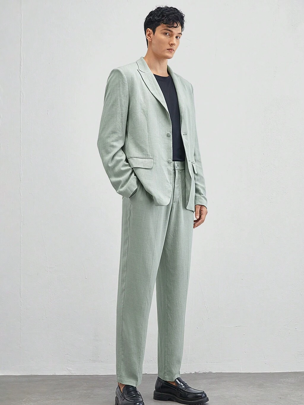 Easy Care 2pcs/Set Men's Old Money Style Woven Cool Silky Ammonia Elastic Fabric Suit Jacket With Tapered Pants