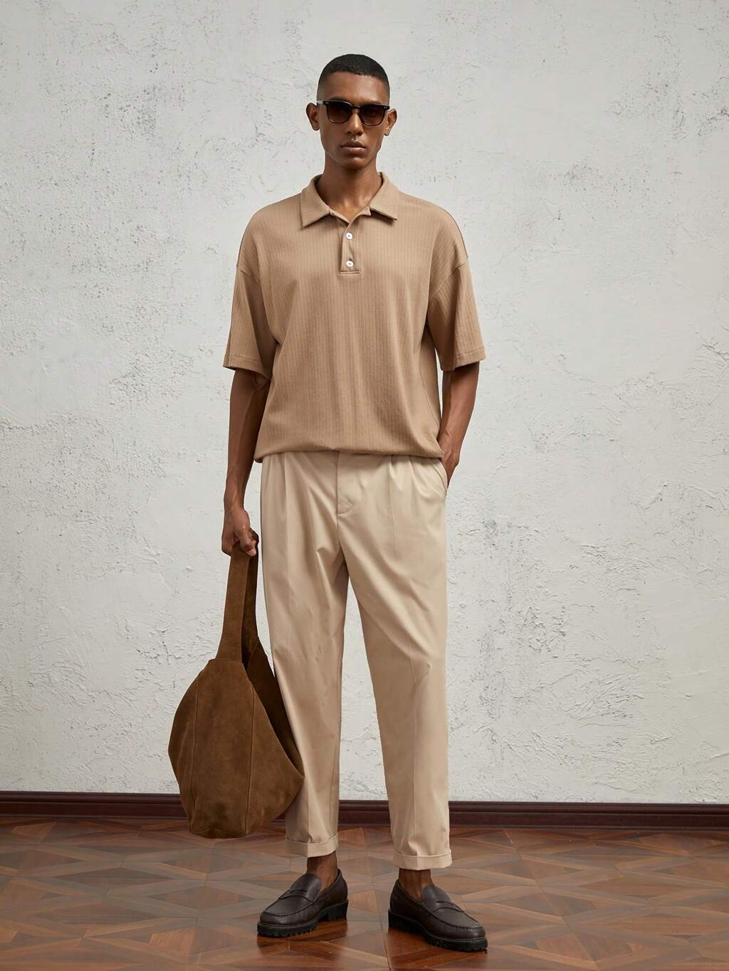 Men Textured Knitted Slim Fit Casual Raglan Short Sleeve Polo Shirt Suitable For Summer