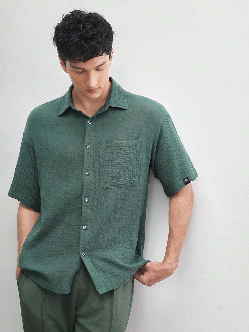 Cotton Men's Loose Fit Casual Woven Short Sleeve Shirt, Suitable For Summer Everyday Wear