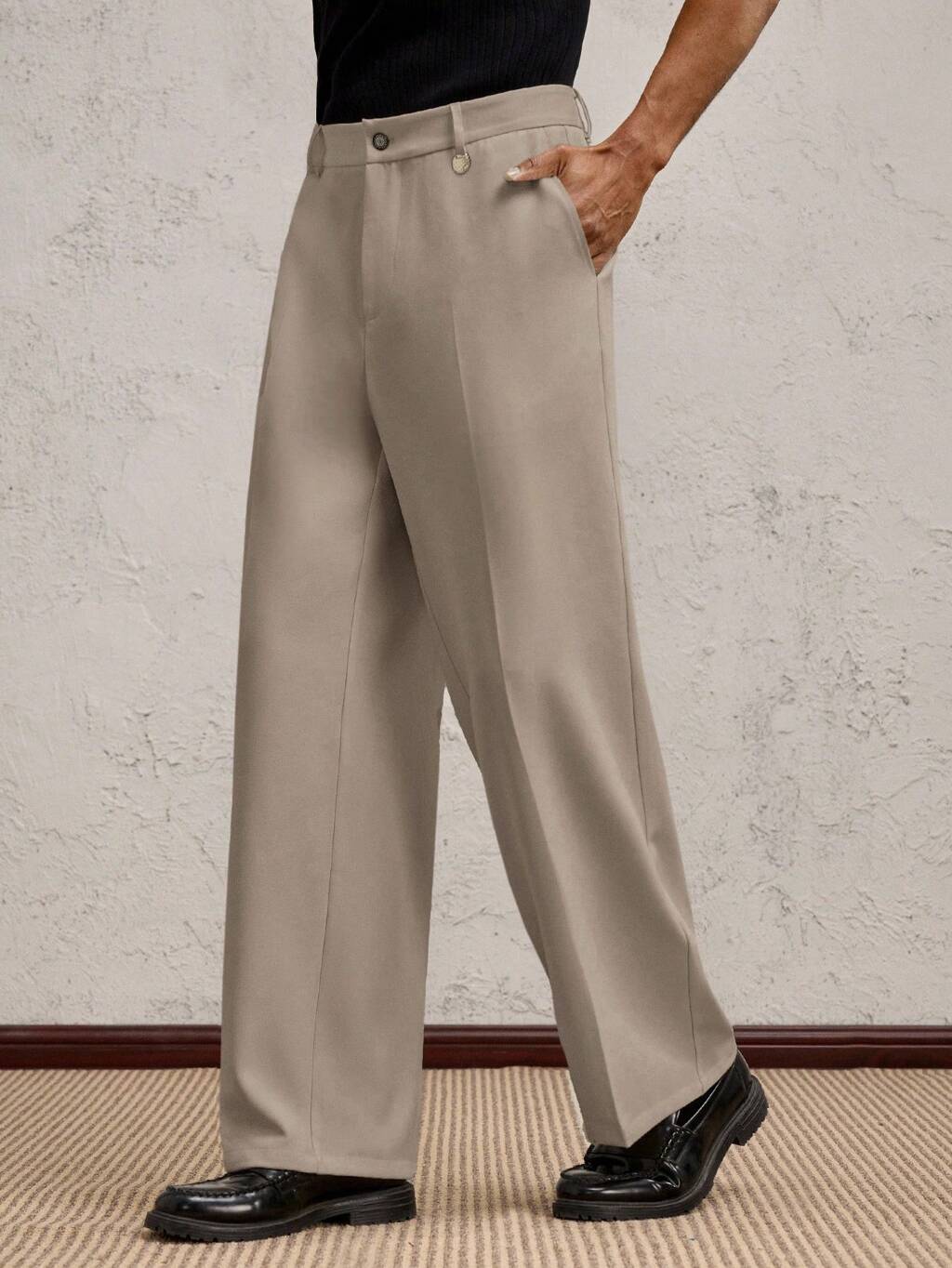 男性用 ウーブン ロングストレートスーツパンツ、春夏のデイリーユースに適したミドルウェストカジュアルパンツ