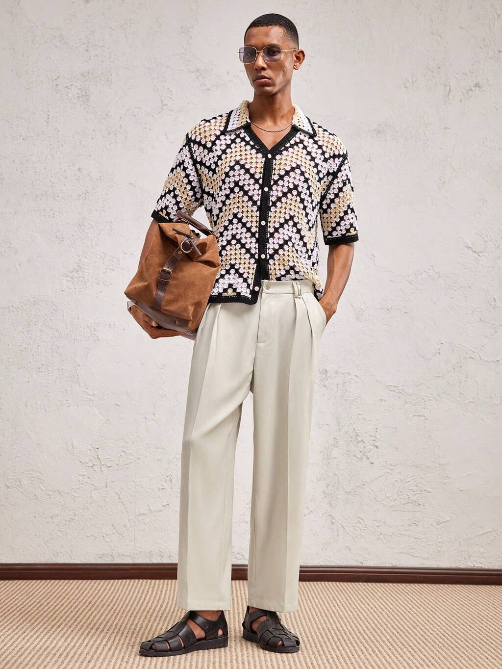 メンズ ニットフローラルカーディガン 秋セーター、ブラック&ホワイト、ファッショナブルなスリムフィット 半袖カジュアルニットトップ、夏、バケーション、デイリー、パーティー、カップル、メンズギフト、記念日に適しています