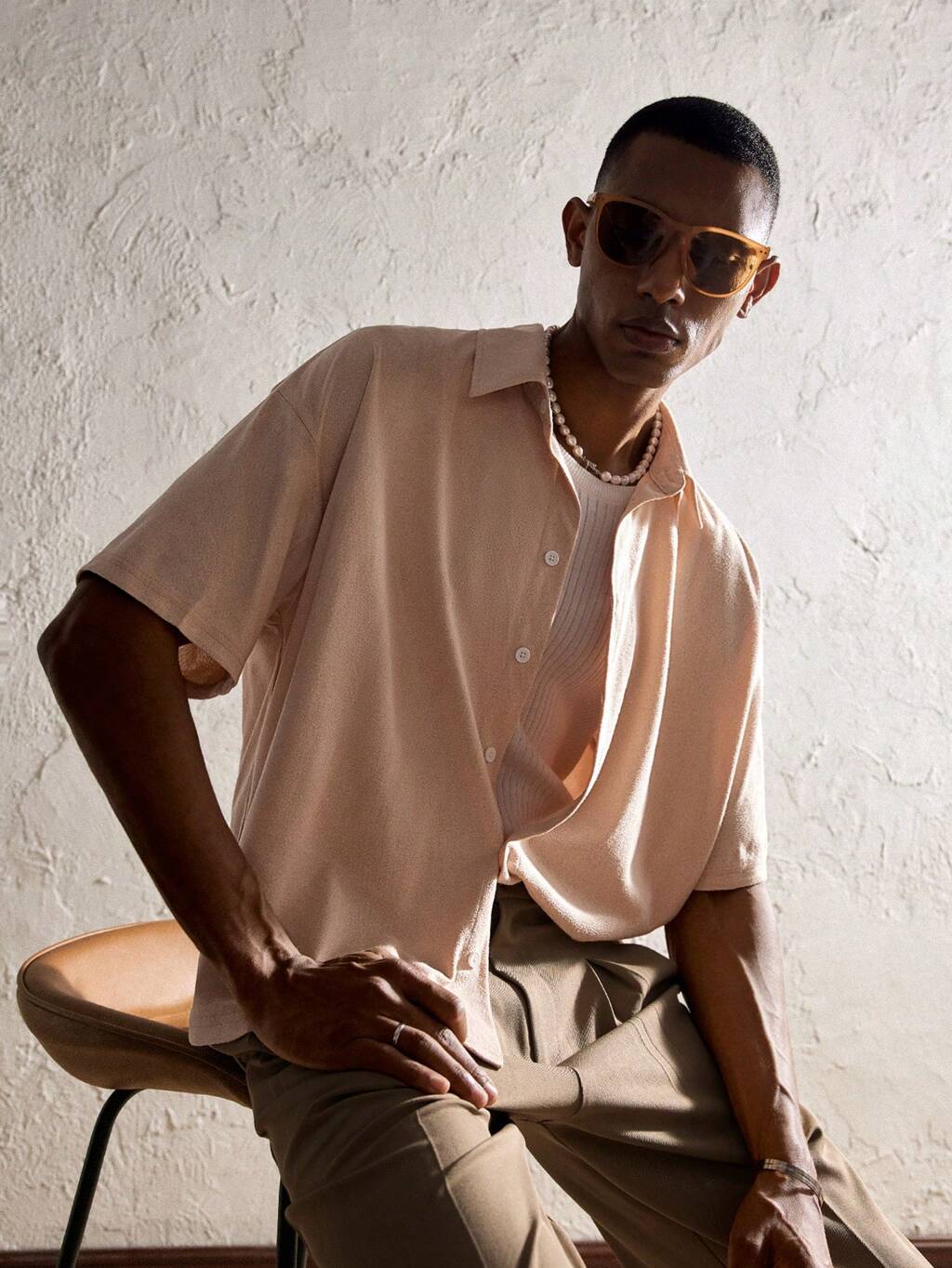 여름에 일상 착용에 적합한 남성용 자카드 니트 슬림핏 리버 카라 짧은 소매 셔츠