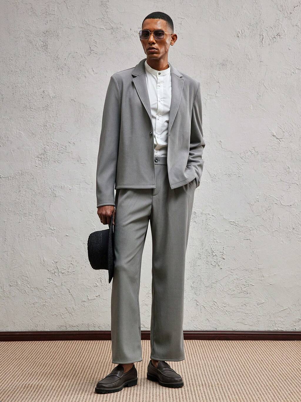 Easy Care Men's Old Money Style Business Casual Woven Jacquard Anti-Wrinkle Loose Fit Blazer, Suitable For Spring And Summer, For Fall Winter