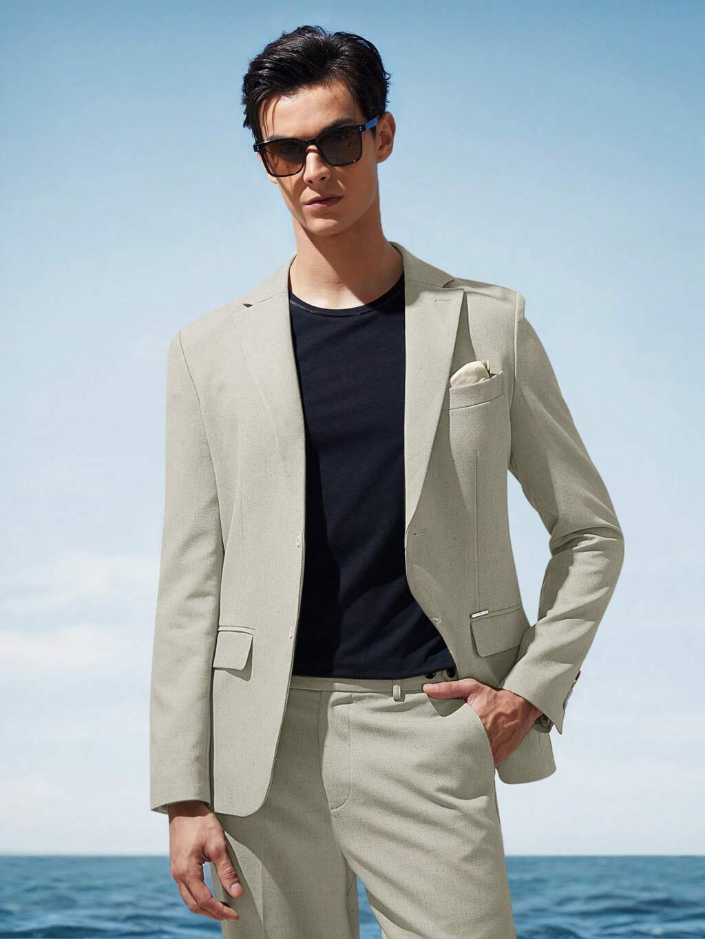 Easy Care UV Protection Men Woven Linen Business Blazer, For Fall Winter