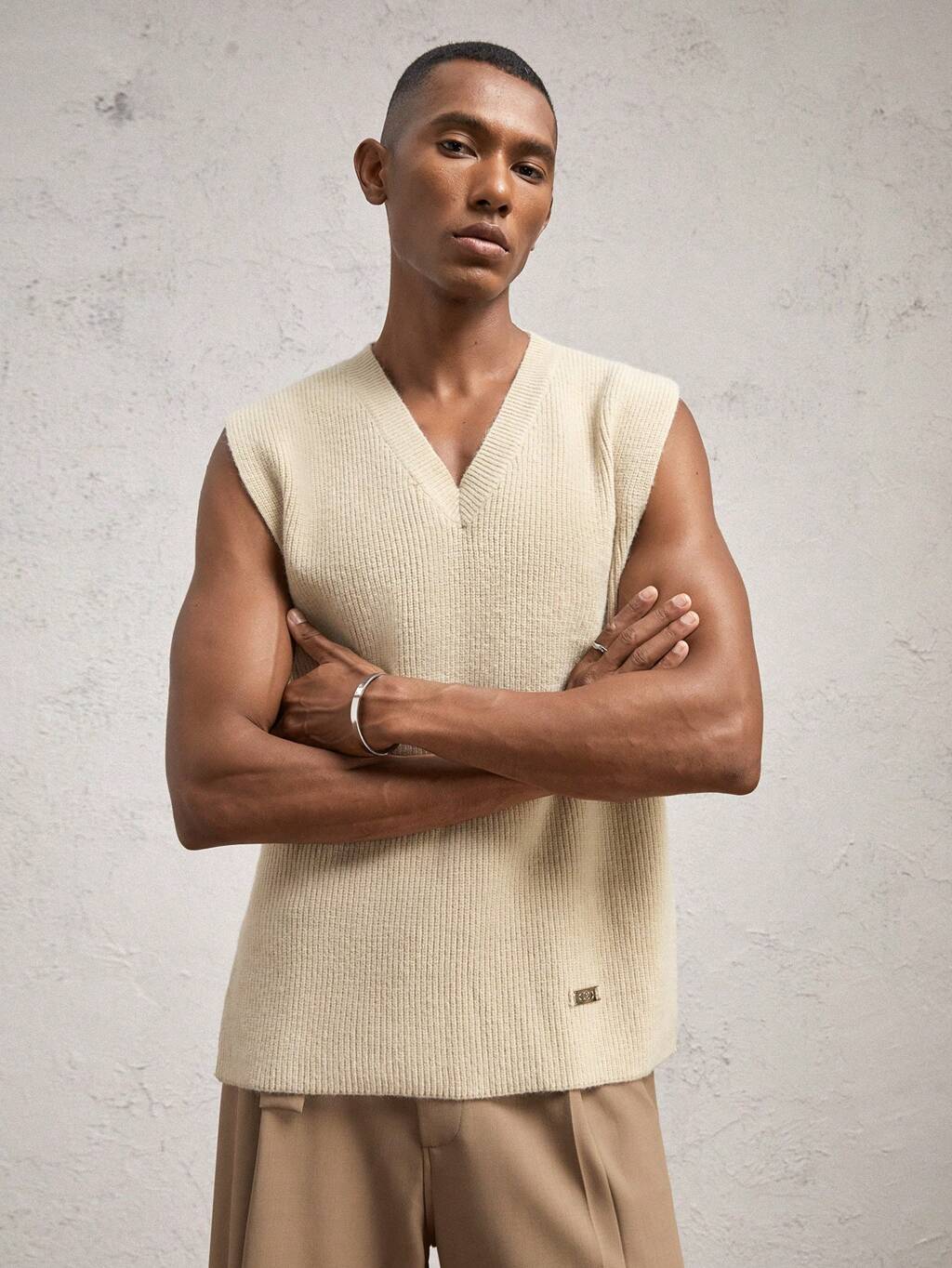 Men's Fitted Knit Jersey V-Neck Sleeveless Sweater